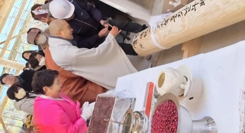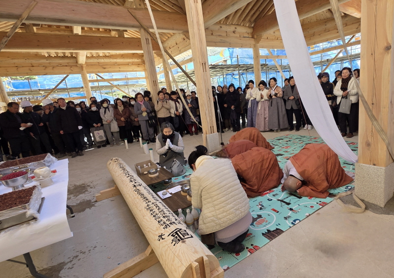건축물의 안전과 무사 완공을 기원하는 신도들과 사부대중.