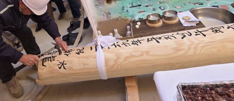 보경사 설선당 상량문을 봉인하는 주지 탄원스님.