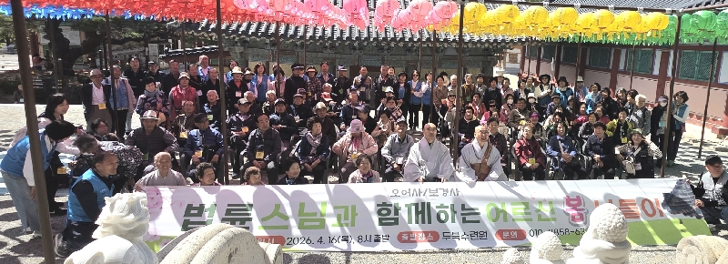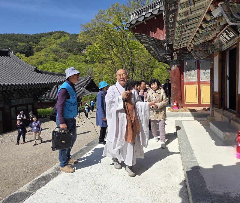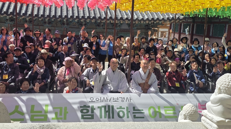 법륜스님의 해설과 함께한 두북 수련원 어르신들의 행복한 보경사 봄나들이.