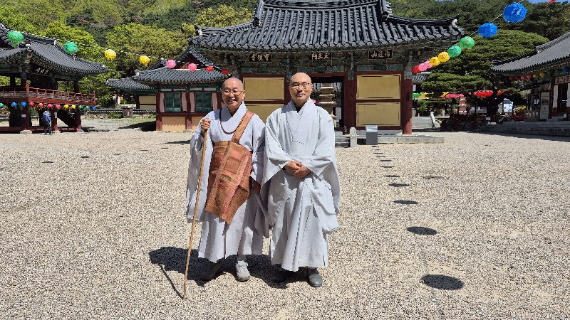 보경사 천왕문 앞에서 법륜스님과 보경사 주지 탄원스님