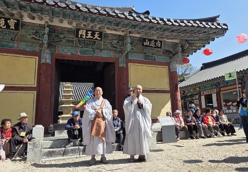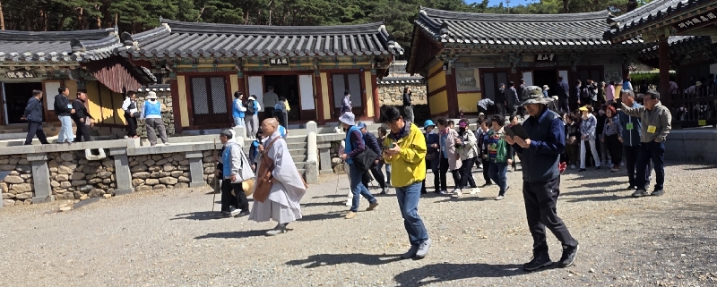 이번 봄나들이는 특별히 법륜스님께서 천년 고찰 보경사의 전각들을 어르신들과 나란히 걸으며, 사찰의 역사와 각 전각을